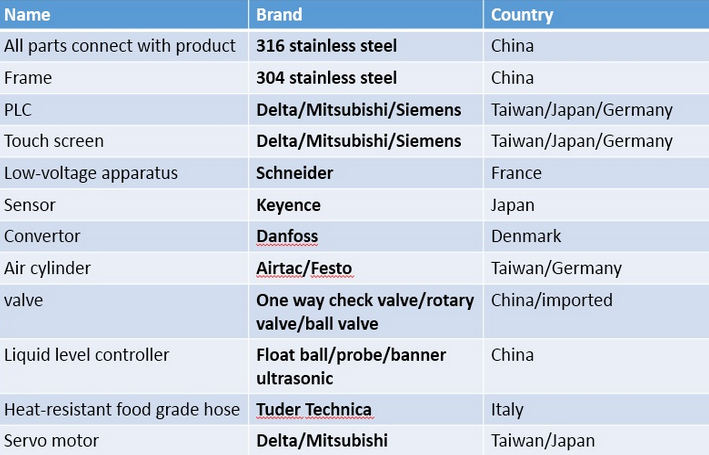 3. Visas sastāvdaļas, kas nonāk saskarē ar izstrādājumu, ir izgatavotas no 316 L nerūsējošā tērauda, ko ieved, un tos apstrādā CNC mašīnas.
